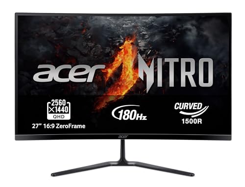 acer Nitro ED270U S3 - Curved Gaming Monitor 27" WQHD 180 Hz (2560 x 1440, 16:9, 250 Nits, 1ms VRB, AMD FreeSync, 2 x HDMI 2.0/1xDP 1.2) PC Gaming Monitor, Black