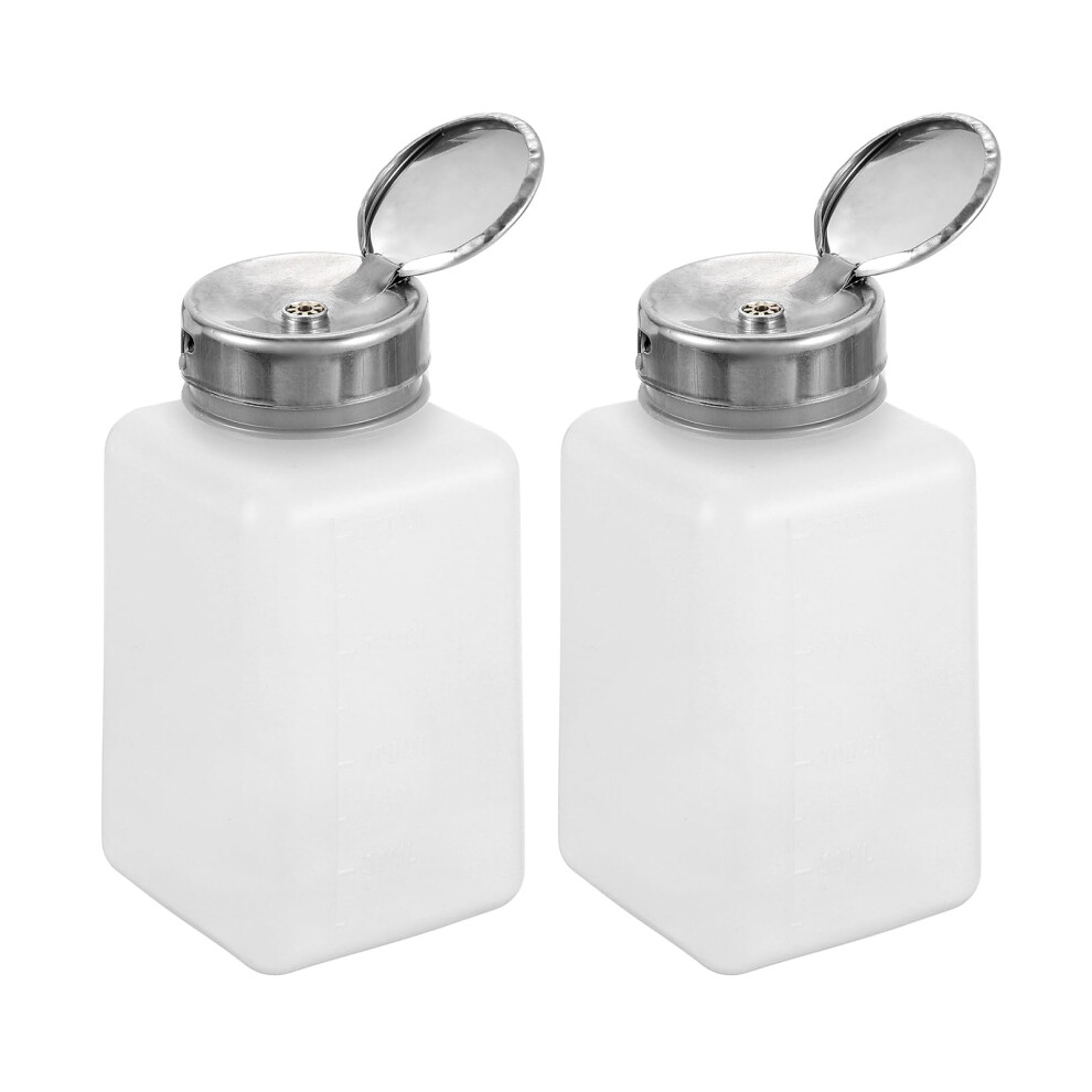 200ml Nail Polish Remover Pump Bottle Set, Aceton Cleaner Dispenser with Stainless Steel Push-Down Head, White
