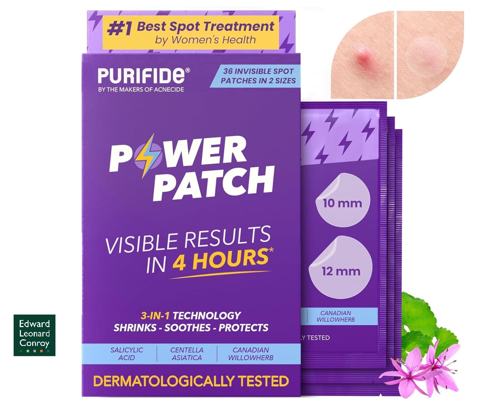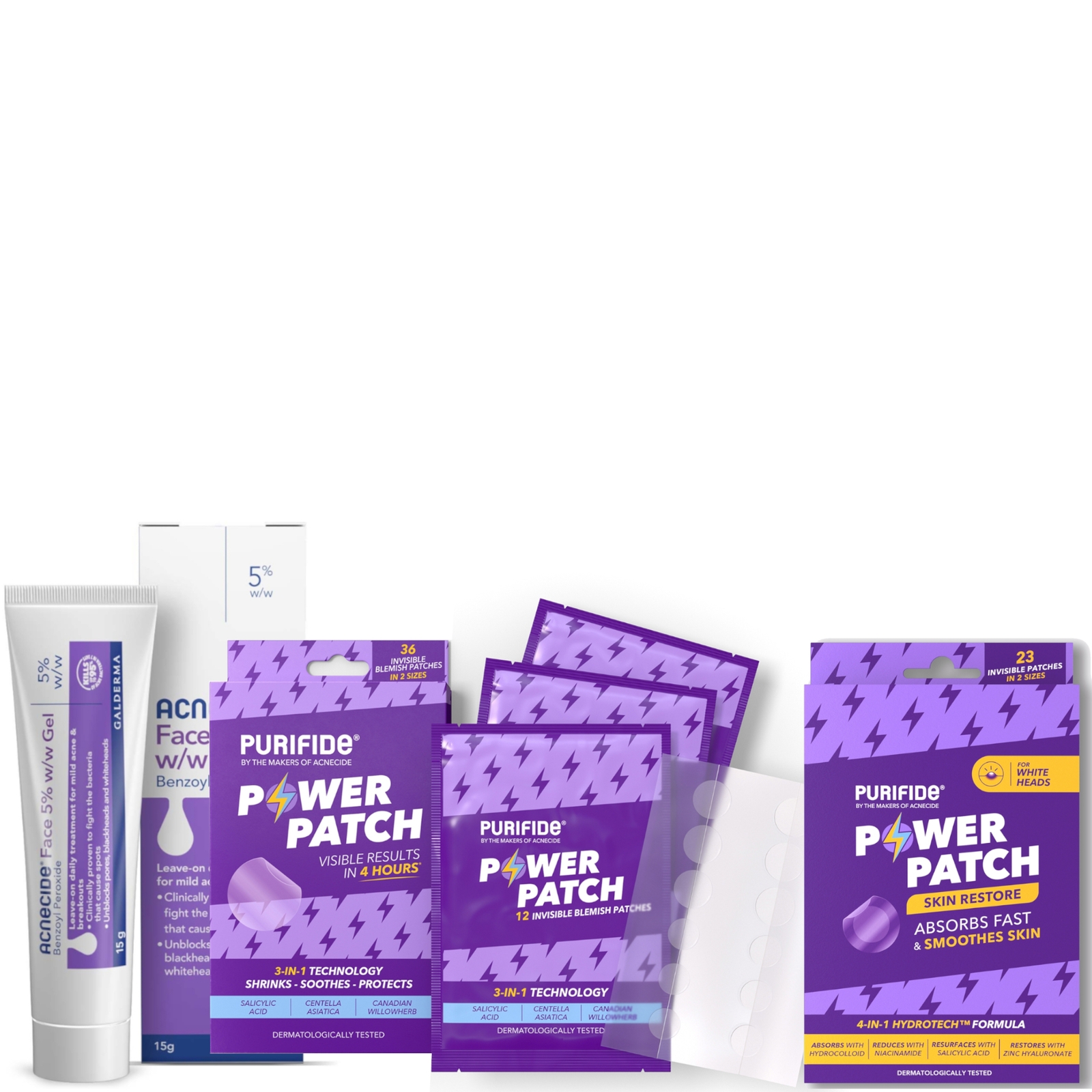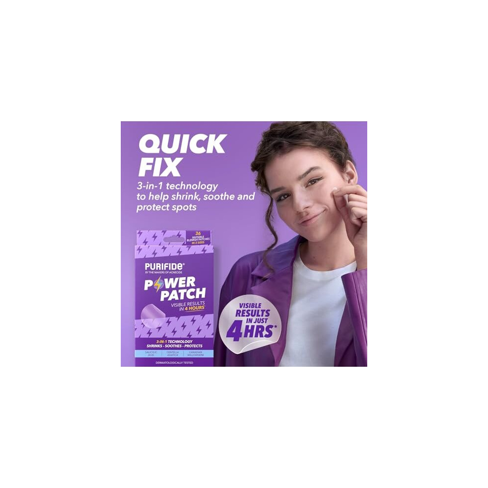 Purifide by Acnecide 3-in-1 Power Patch, Salicylic Acid Pimple Patches for 4 Hour Visible Results, 36 Spot Patches for Emerging Spots suitable for