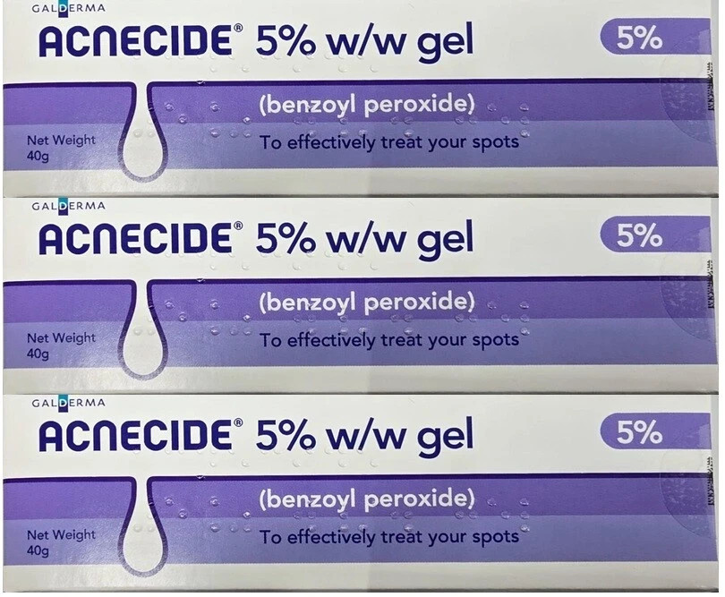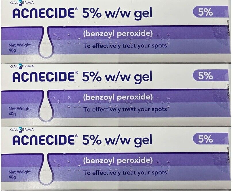 Acnecide 5% w/w Benzoyl Peroxide Gel 40g x3 Acne Treatment Spot Gel