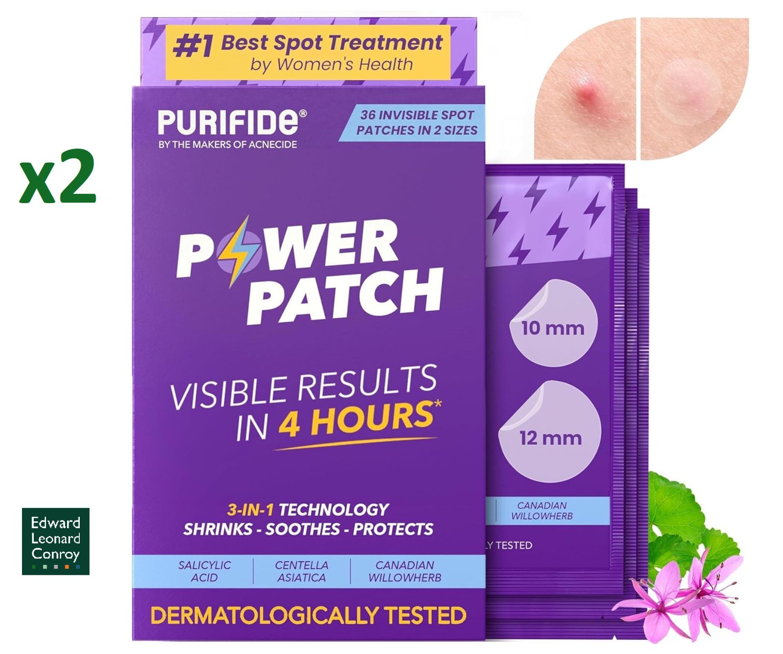 2 x Purifide by Acnecide Power Pimple Patches, 36 Invisible Spot Patches (72)