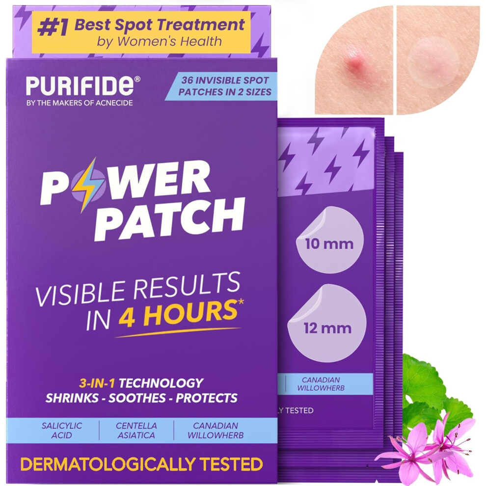 Purifide by Acnecide 3-in-1 Power Patch, Salicylic Acid Pimple Patches for 4 Hour Visible Results, 36 Spot Patches for Emerging Spots suitable for