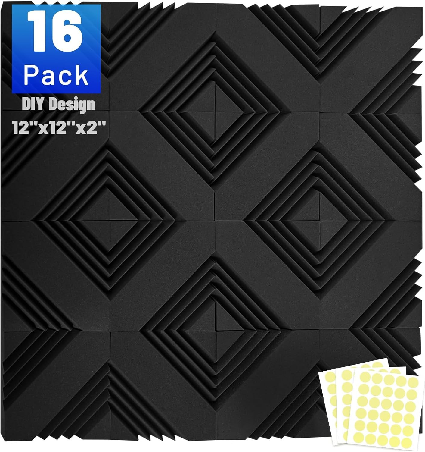 16 Pack Sound Proofing Panels, 2" X 12" X 12"Acoustic Wall Panels, Sound Absorbi
