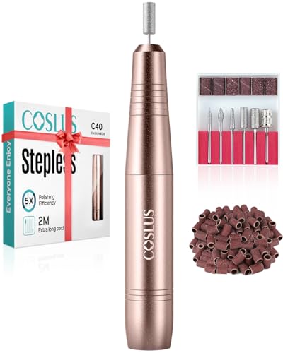 COSLUS Electric Nail Drill, Nail Files for Gel Acrylic Nature Nails, Adjustable Speed 0-20000RPM, Portable Manicure Pedicure Set with 6 Drill Bits 31 Sanding Bands, E File for Beginner Girl Women Mum