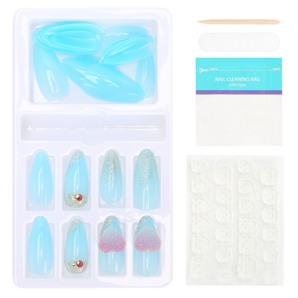 Reusable Press On Nails, Double Structured Design Acrylic False Nail Manicure Set for Women, Customizable Diy Trim, Long Lasting Polish Free Blue