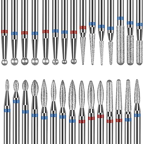 30PCS Cuticle Nail Drill Bits Set: 3/32'' Nail Bits for Acrylic Gel Nail Prep Contain Flame/Ball/Needle/Safety Shape Heads, Diamond Remover Tools Efile Bits for Salon Home Manicure Pedicure Nail Tech