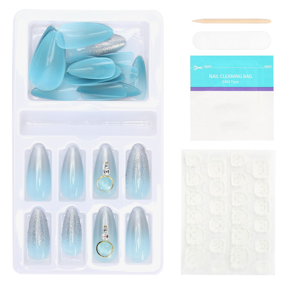 Medium Square Press on Nails Glitter Gradient Fake Nails Acrylic Manicure Kit for Women 24Pcs