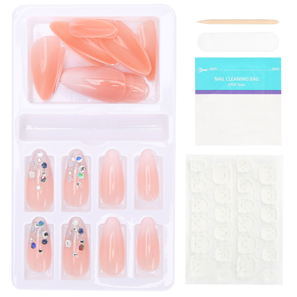 Full Coverage Artificial False Nails with Gradient Design, French Press Reusable Acrylic Manicure Kit Non Toxic Fake Nails for Women Includes Jelly
