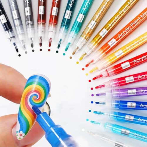 Nail Art Pens Markers Set,Christmas Gifts,18 Colors Acrylic Paint Markers Nail Polish Set for Drawing, Dotting, Lining, Complete DIY Manicure Kit for Home Salon,Christmas Gifts & Nail Designs