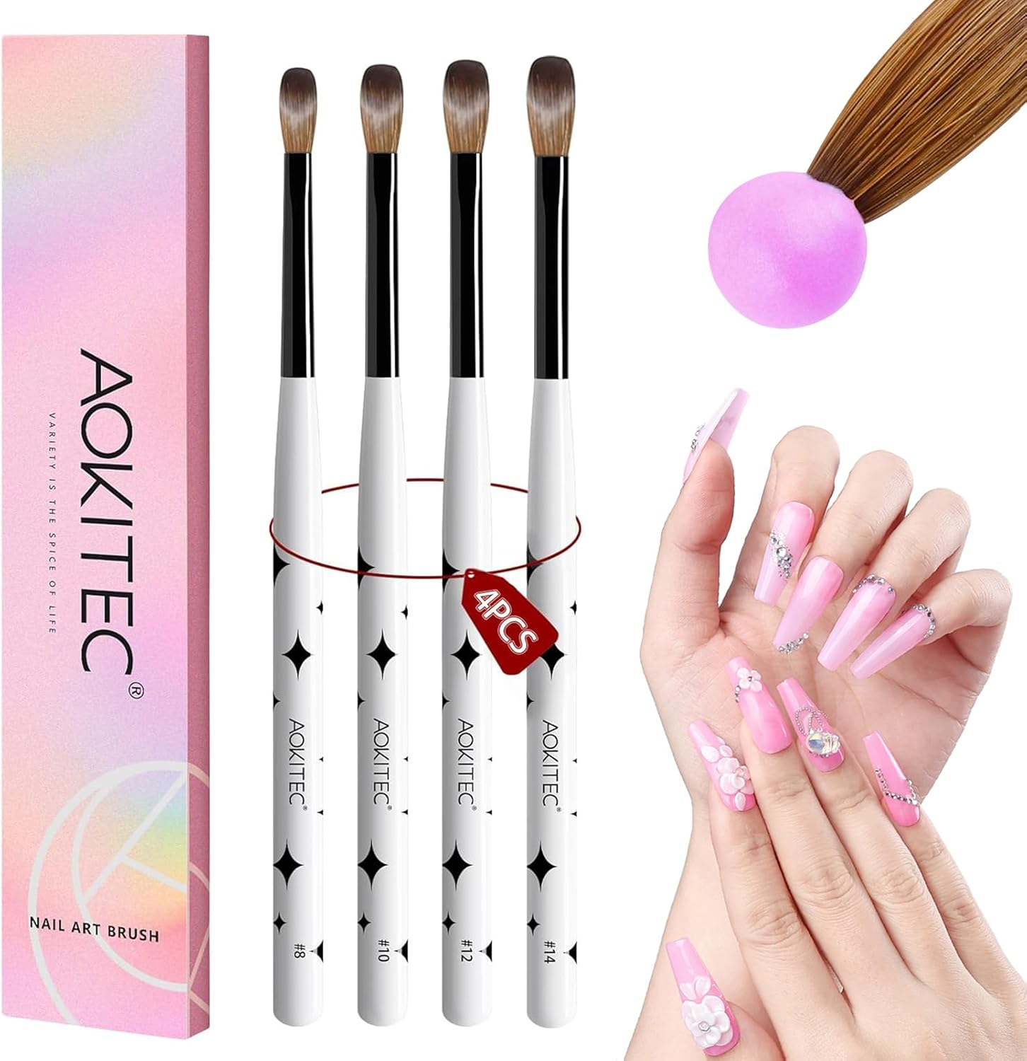 Aokitec Acrylic Nail Brush Set, 4pcs Nail Brushes for Acrylic Powder Applicatio