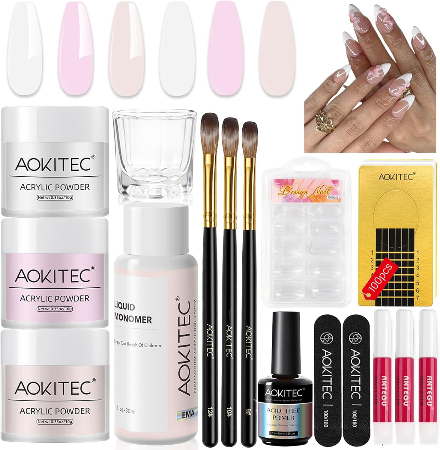 Acrylic Nail Kits Full Set for Beginners: Pink White Clear Colors Acrylic Powder