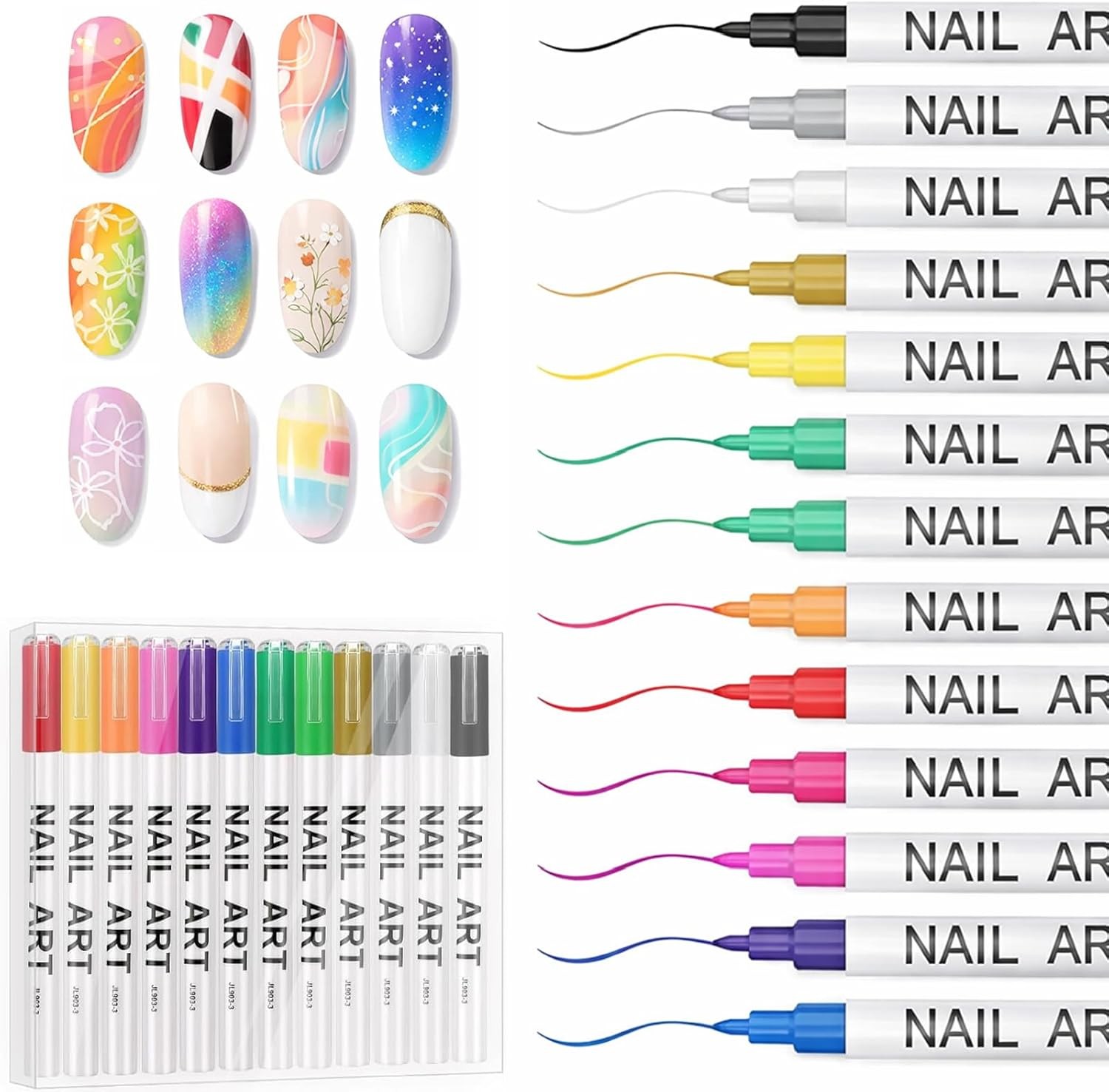 Mikloven 12 Colors Acrylic Nail Art Marker Set – Fine Tip Quick Dry Nail Poli