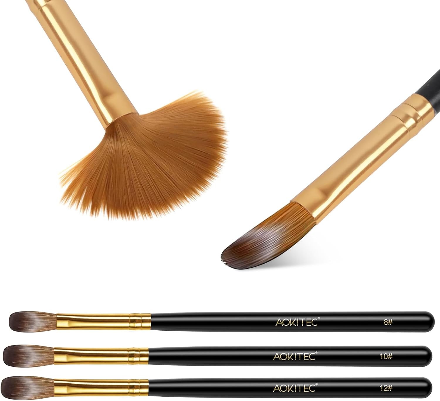 Aokitec 3pcs Acrylic Nail Brush Set - Size 10/12/14 Kolinsky Nail Brushes for A