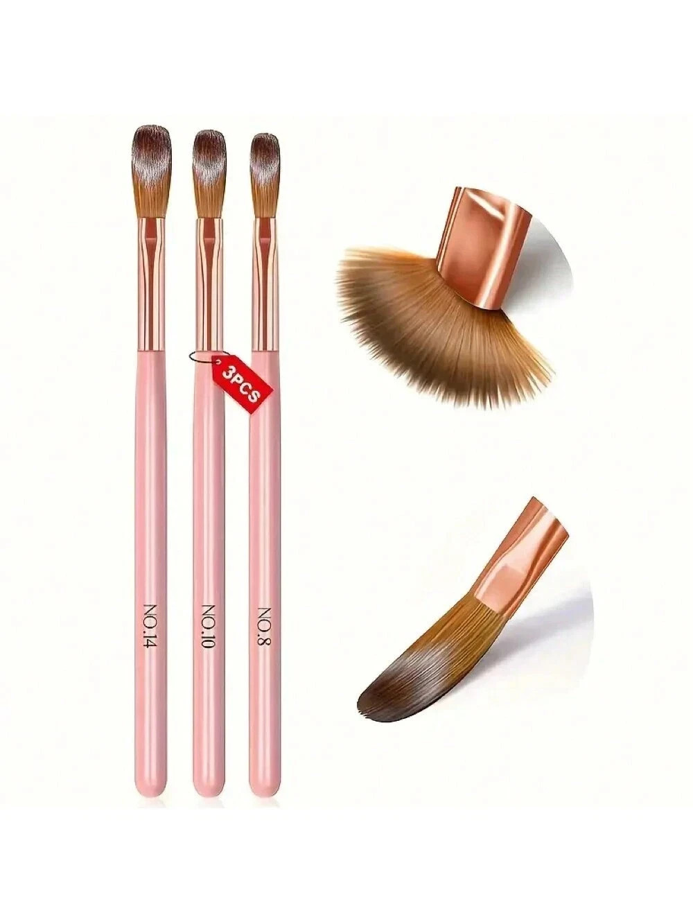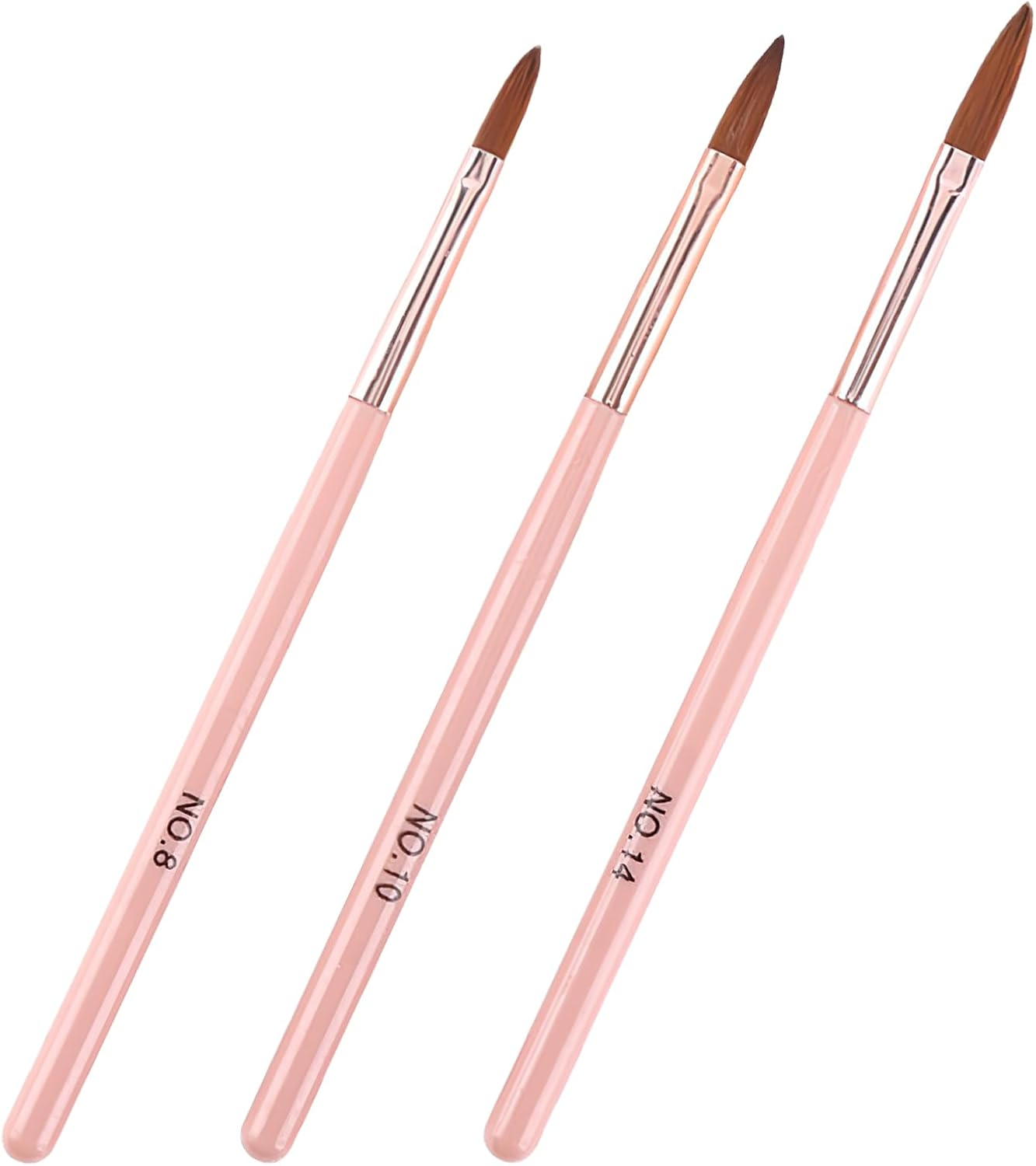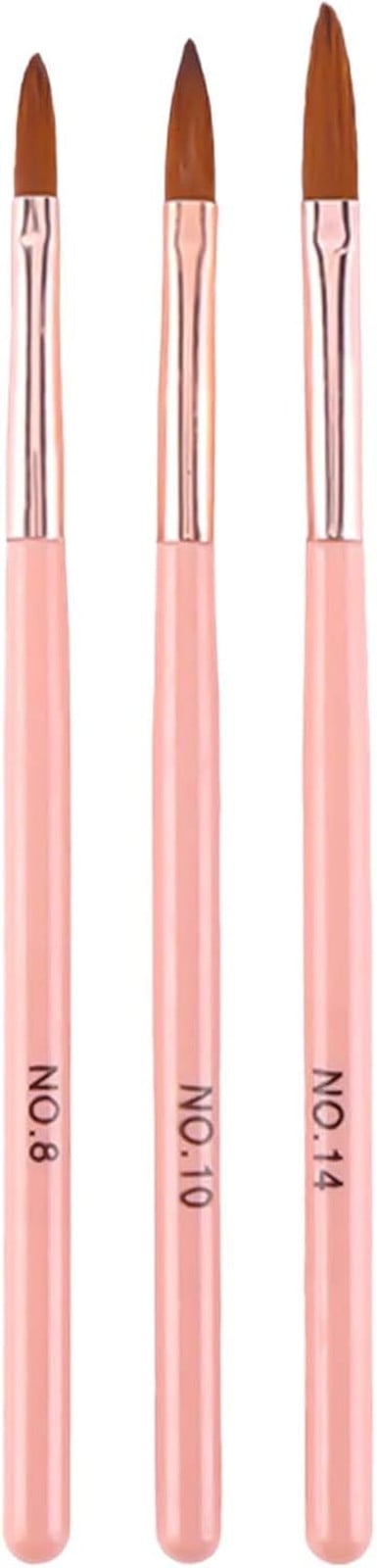 3-Piece Acrylic Nail Brush Set – Sizes 8, 10, 14 – Professional Nail Extension &