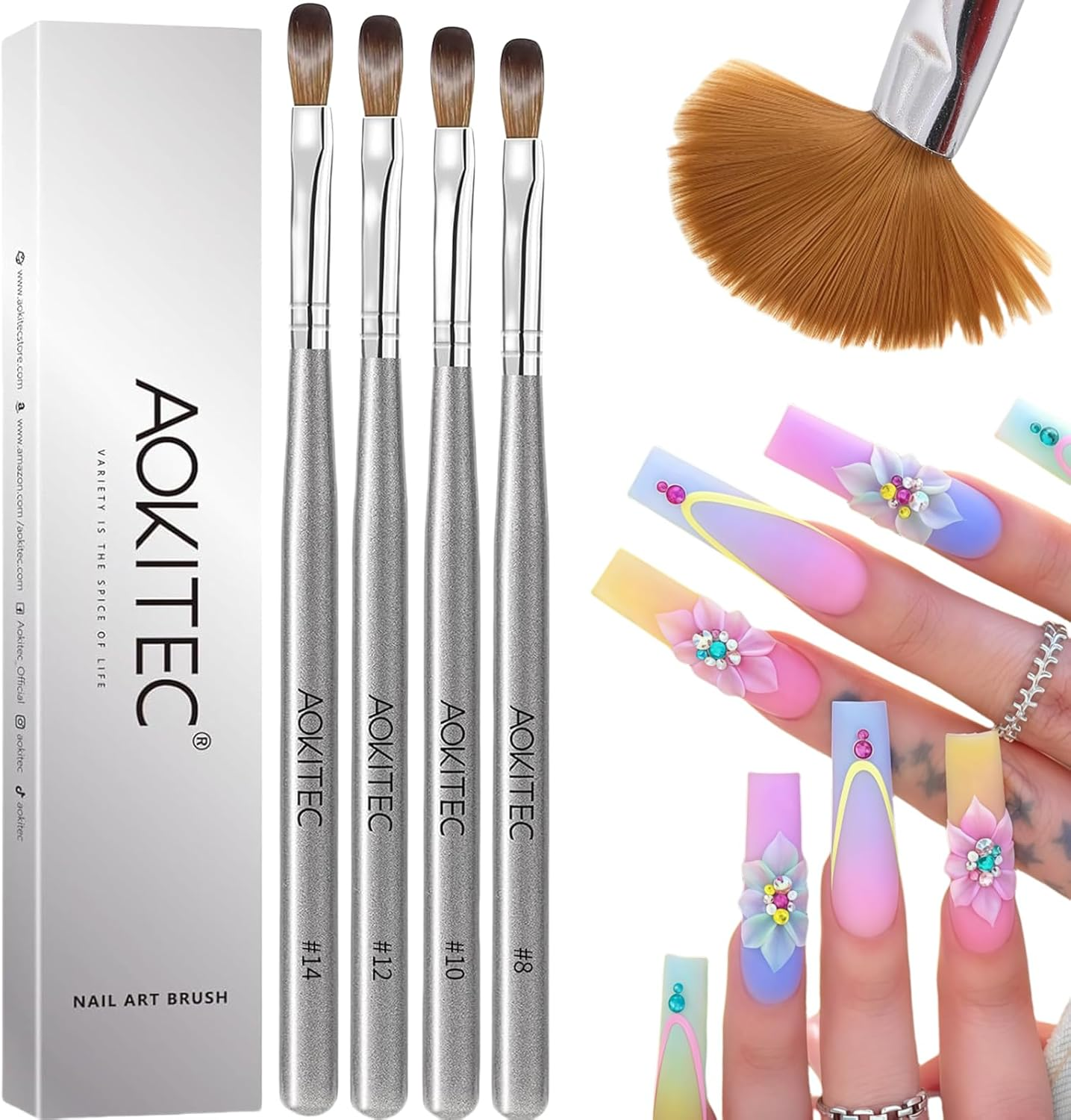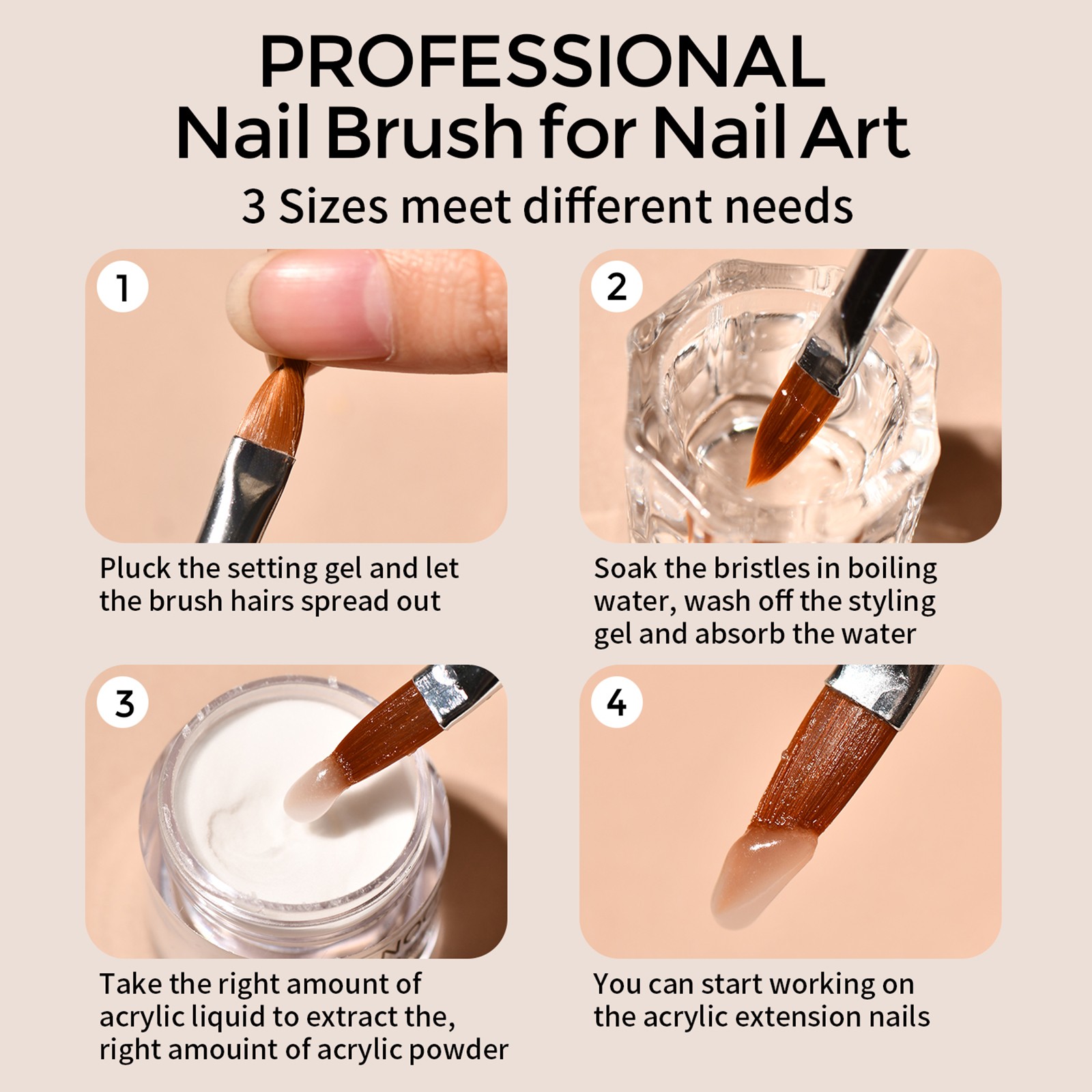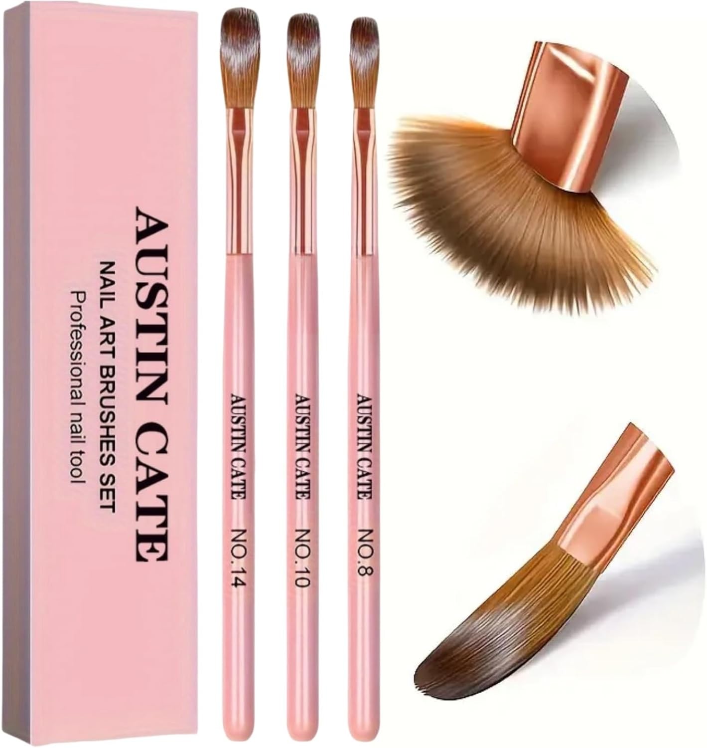 3-Piece Acrylic Nail Brush Set – Sizes 8, 10, 14 – Professional Nail Extension &