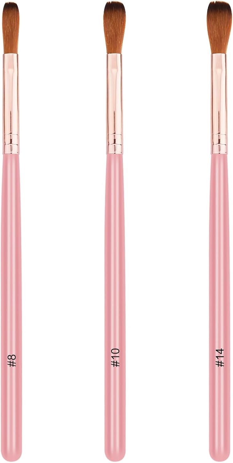 MelodySusie Acrylic Nail Brush Set,Size 8/10/14 3Pcs Professional Nail Brushes for Acrylic Application Acrylic Powder Nail Art Extension and 3D Nail Carving for DIY Home Salon Nail Art Tool Pink