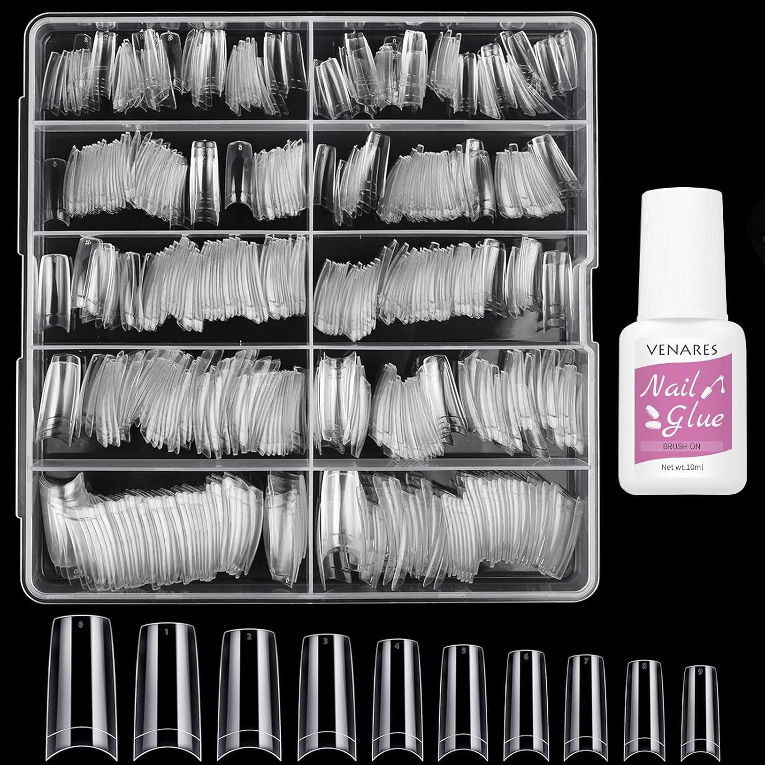 Acrylic Nail Tips Set, Venares 500Pcs Half Cover Square Gel Nail Extension Kit