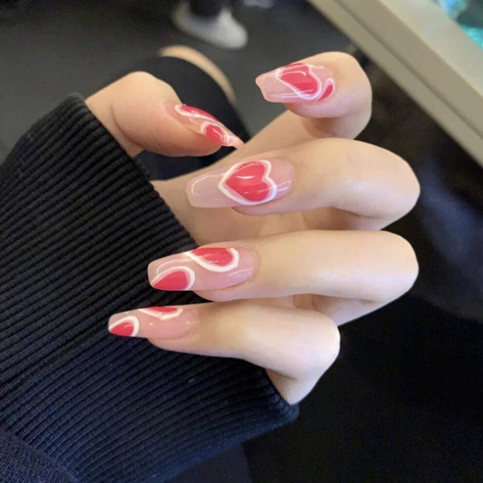 24 Stylish Glossy Full Coverage Coffin Pattern Acrylic Fake Nails In Acrylic Fake Nail Kit For Girls (Rose Pink).