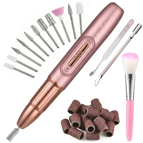COSLUS Cordless Portable Electric Nail Files: Professional Nail Drill Kit for Acrylic Gel Nails, Rechargeable Manicure Pedicure Tools for Shaping, Polishing, Removing Dead Skin, Home Salon Use