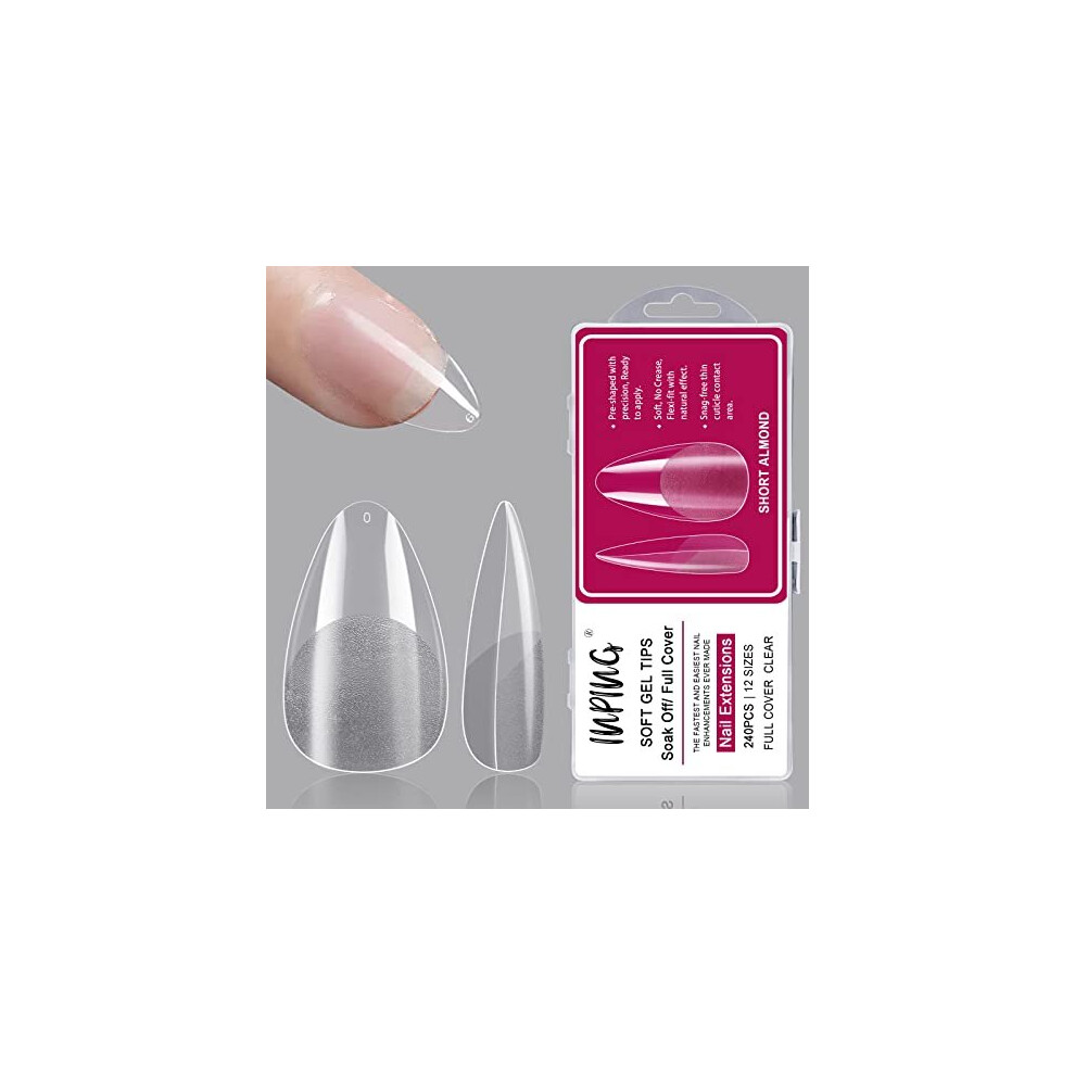 Soft Gel Full Cover Nail Tips, 240PCS Short Almond Clear Nail Tips Pre-Buff Break Resistant Acrylic False Nails Tips Kit Reusable Nail Extensions for