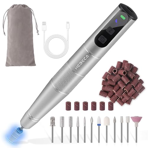 HEBECA Electric Nail Drill Professional - Electric Nail Files for Acrylic and Gel Nails 20000rpm - 12 in 1 Nail Drill Machine Manicure Pedicure Set Adjustable Speed E File Kit (Gold) (Gray)