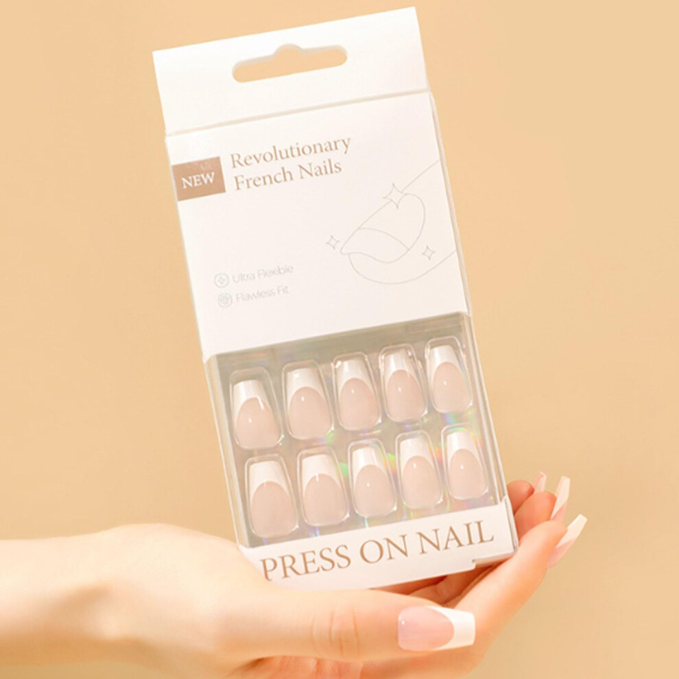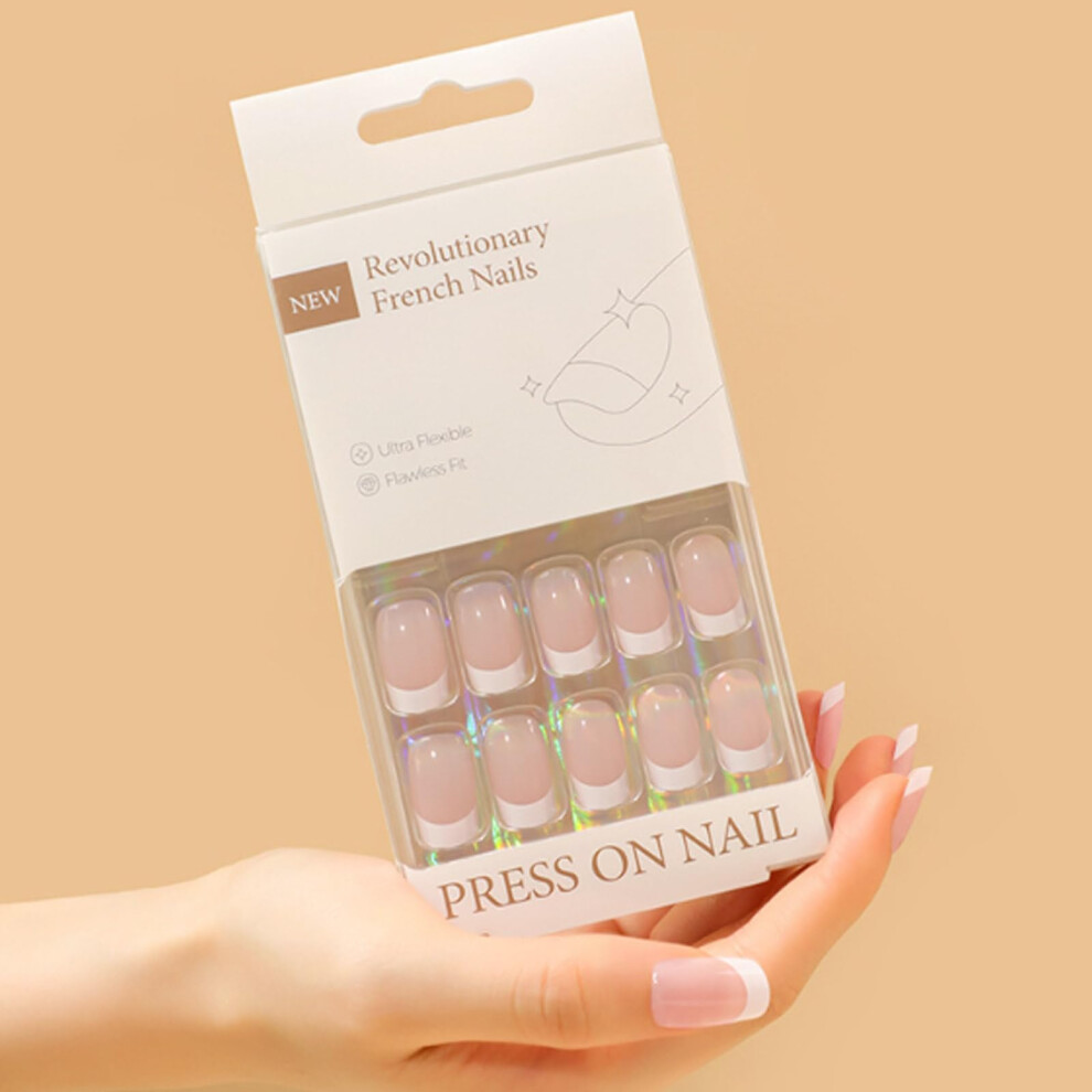 Press On Nails Medium Square Acrylic Fake Nails Kit with Glue, Reusable French Style 30PCS Ref: 9165