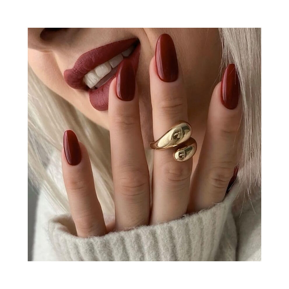 Red Almond Press on Nails Glossy Reusable Fake Nails Acrylic Manicure Kit for Women 24pcs