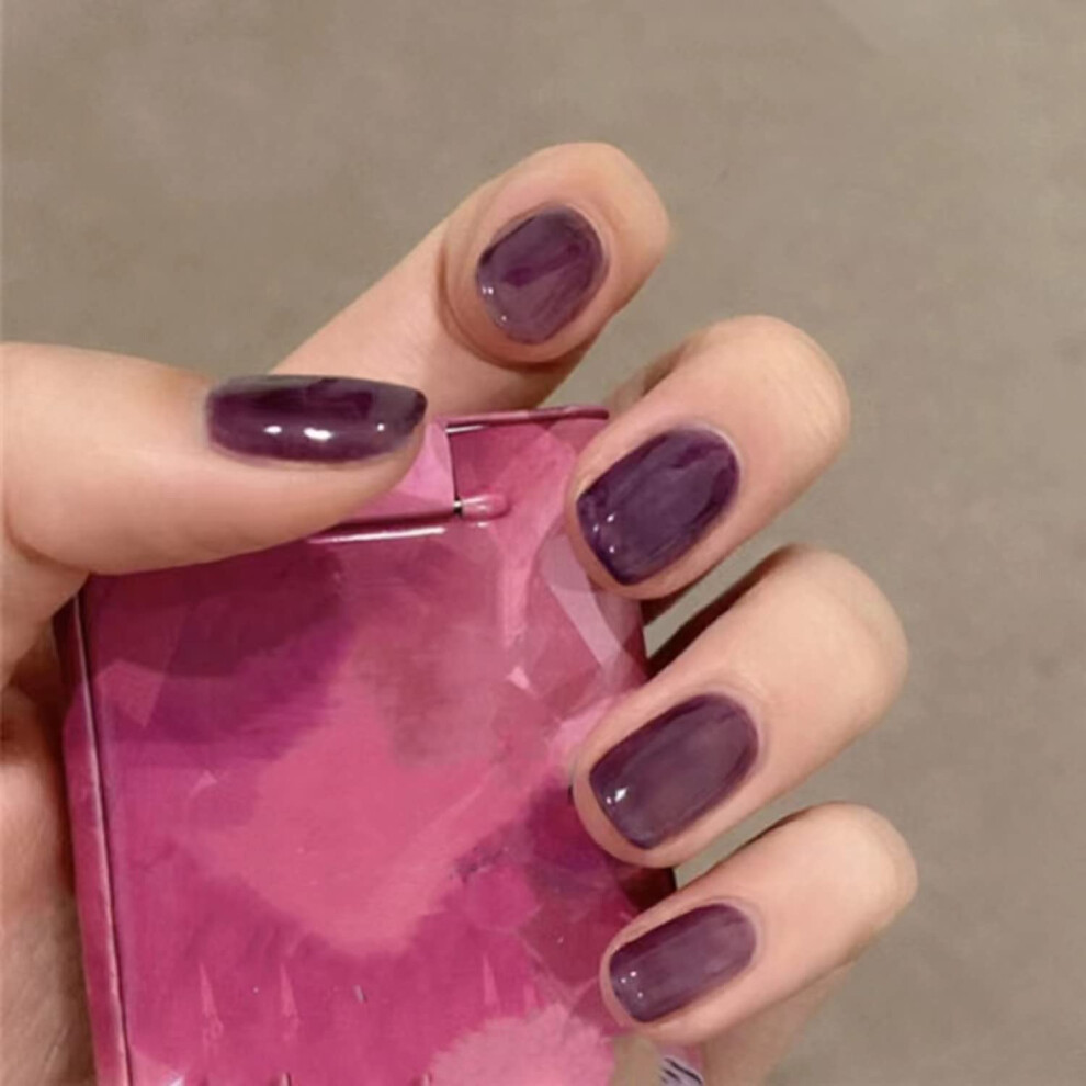Short Square Press On Nails Glossy Purple Acrylic Fake Nails Kit with Multiple Sizes 24pcs