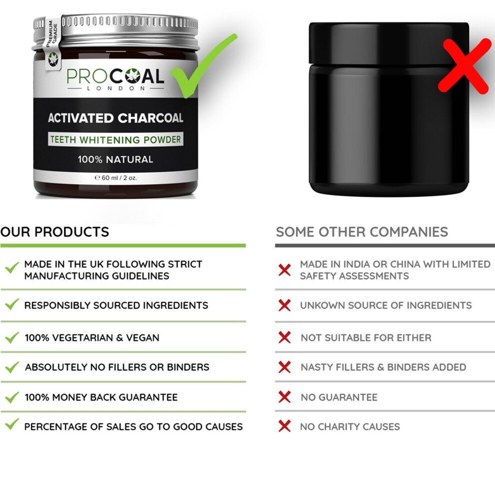 PROCOAL Activated Charcoal Teeth Whitening Powder - 100% Natural, Fluoride-Free Vegan Teeth Whitener Kit (UK Made) PCO-1