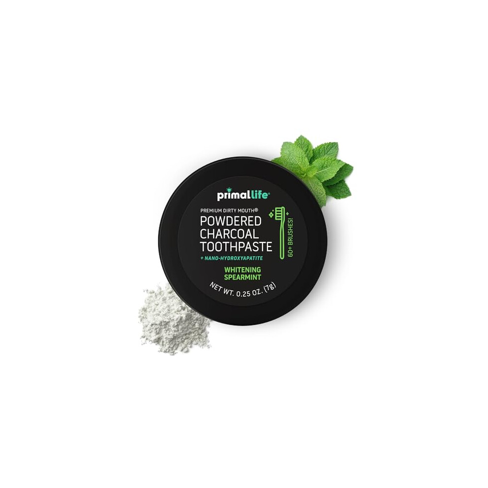 Primal Life Organics - Dirty Mouth Toothpowder Activated Charcoal Tooth Cleaning Powder Essential Oils with Kaolin & Bentonite Clay 200+ Brush