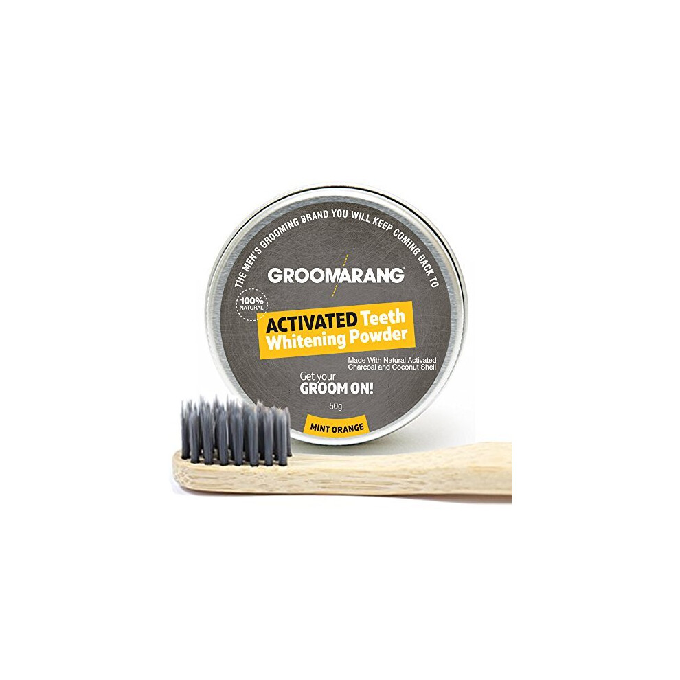 Groomarang Activated Charcoal And Coconut Shell Mint Orange Teeth Whitening Powder 50g FREE Bamboo Toothbrush
