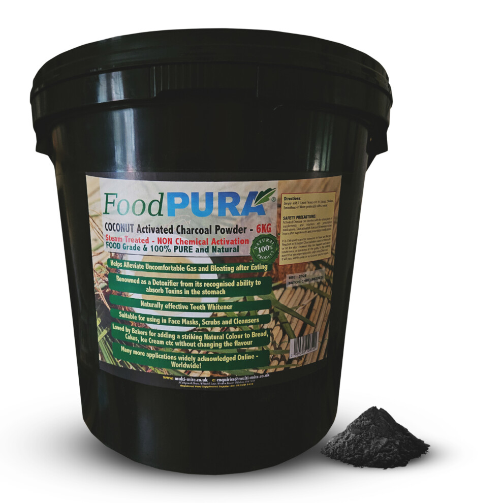 FoodPURA 6KG Bkt 100% Natural Activated Coconut Charcoal Food Grade Fine Powder