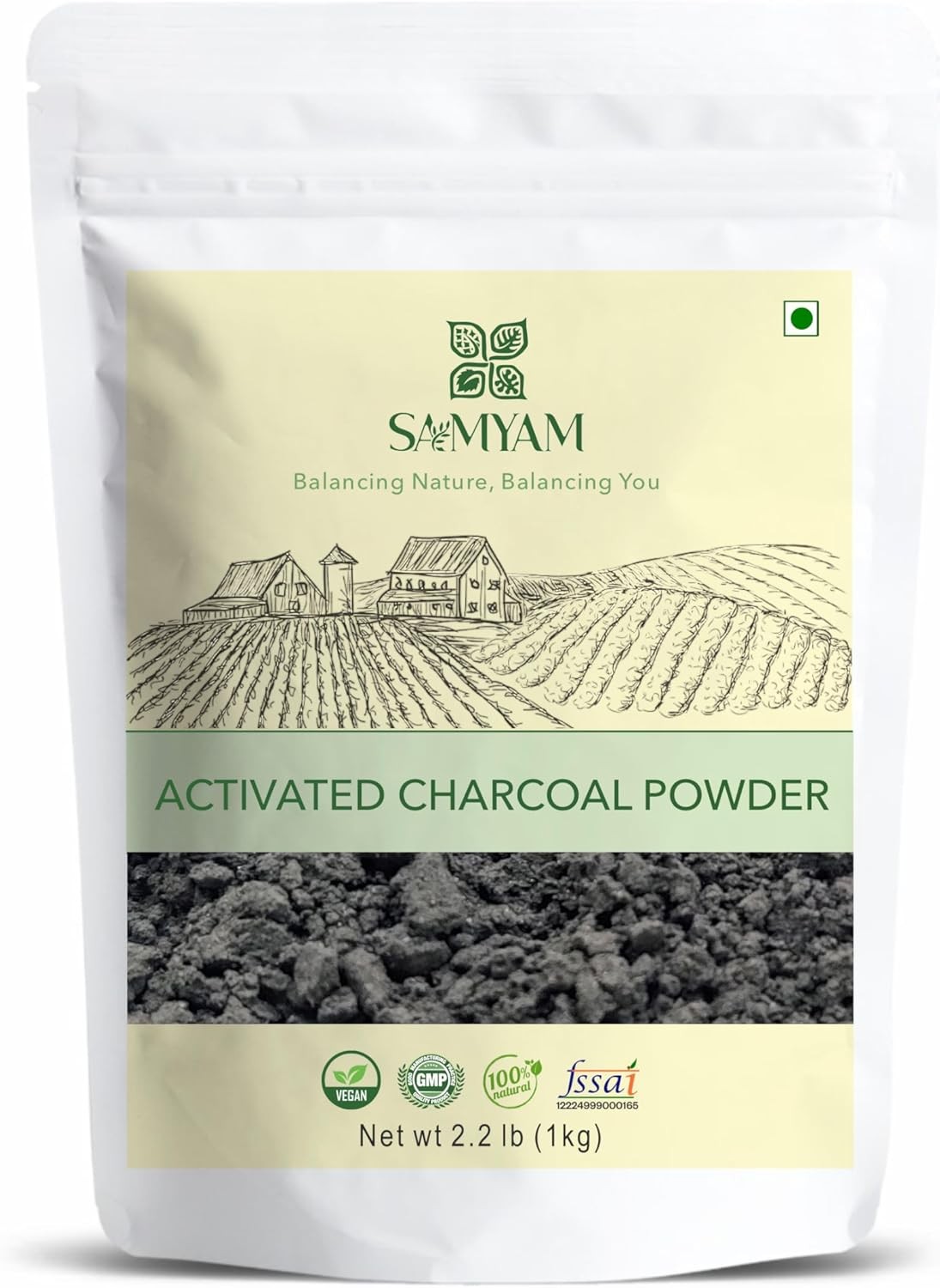 SAMYAM Food Grade Activated Charcoal Powder from Coconut Shells, 1Kg (2.2 lb) |