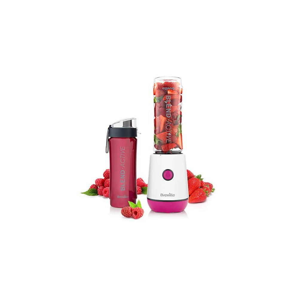 Breville Blend Active Personal Blender & Smoothie Maker | 350W | 2 Portable Blend Active Bottles (600ml) | Leak Proof Lids | White & Pink [V
