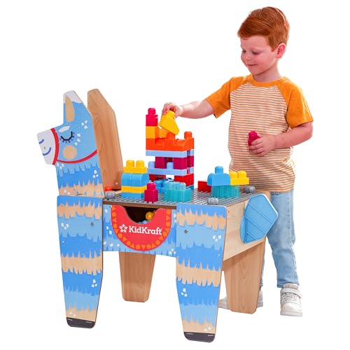 KidKraft Llama Piñata Building Bricks Wooden Table with 50 Blocks, Activity Table with toy storage, Kids' Toys, 20421