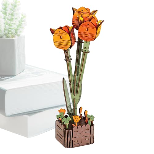 Hkuoeue 3D Wooden Puzzles | Flower Model Kit - 3D Wooden Puzzles,for Kids Shelf Display Table Centerpiece Family Project Classroom Activity