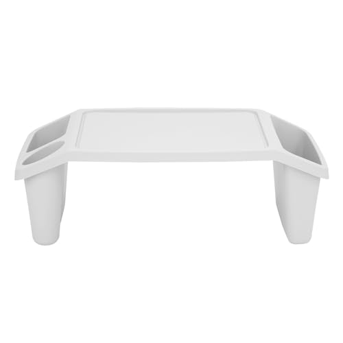 Portable Lap Tray - Multipurpose Laptop Desk TV Tray with Storage Compartments - Lightweight Bed Table for Breakfast & Dinner - Durable Plastic Activity Table for Kids - White