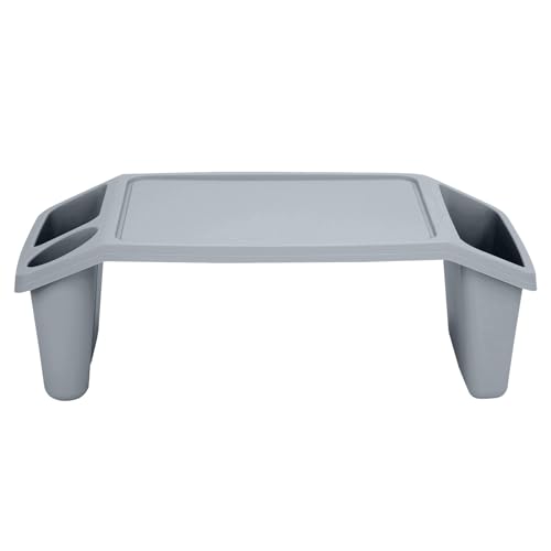 Portable Lap Tray - Multipurpose Laptop Desk TV Tray with Storage Compartments - Lightweight Bed Table for Breakfast & Dinner - Durable Plastic Activity Table for Kids - Grey