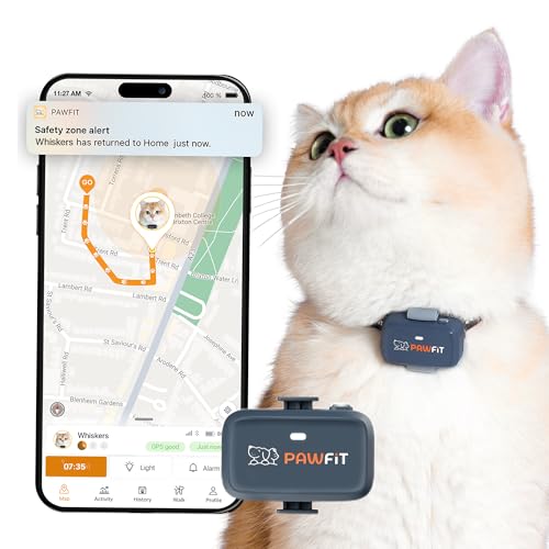 Pawfit Lite for Cats 4g GPS Tracker | Ultra-Small (<18g) Design | Real-Time Tracking | Activity Monitoring | Location History | Unlimited Range | Safety Collar Included | Charcoal grey