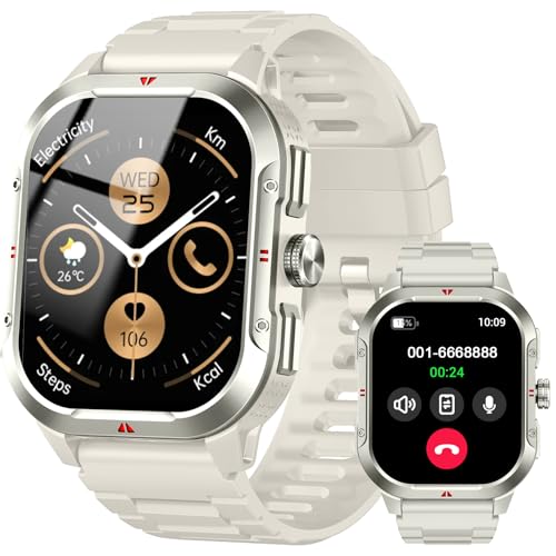 GPS Smart Watch for Men Women, 2.06"HD Fitness Watch Answer/Make Call, Smartwatch with Heart Rate/Sleep Monitor/Step Counter, 100+ Sports Modes, IP68 Waterproof Activity Tracker for Android iOS, White