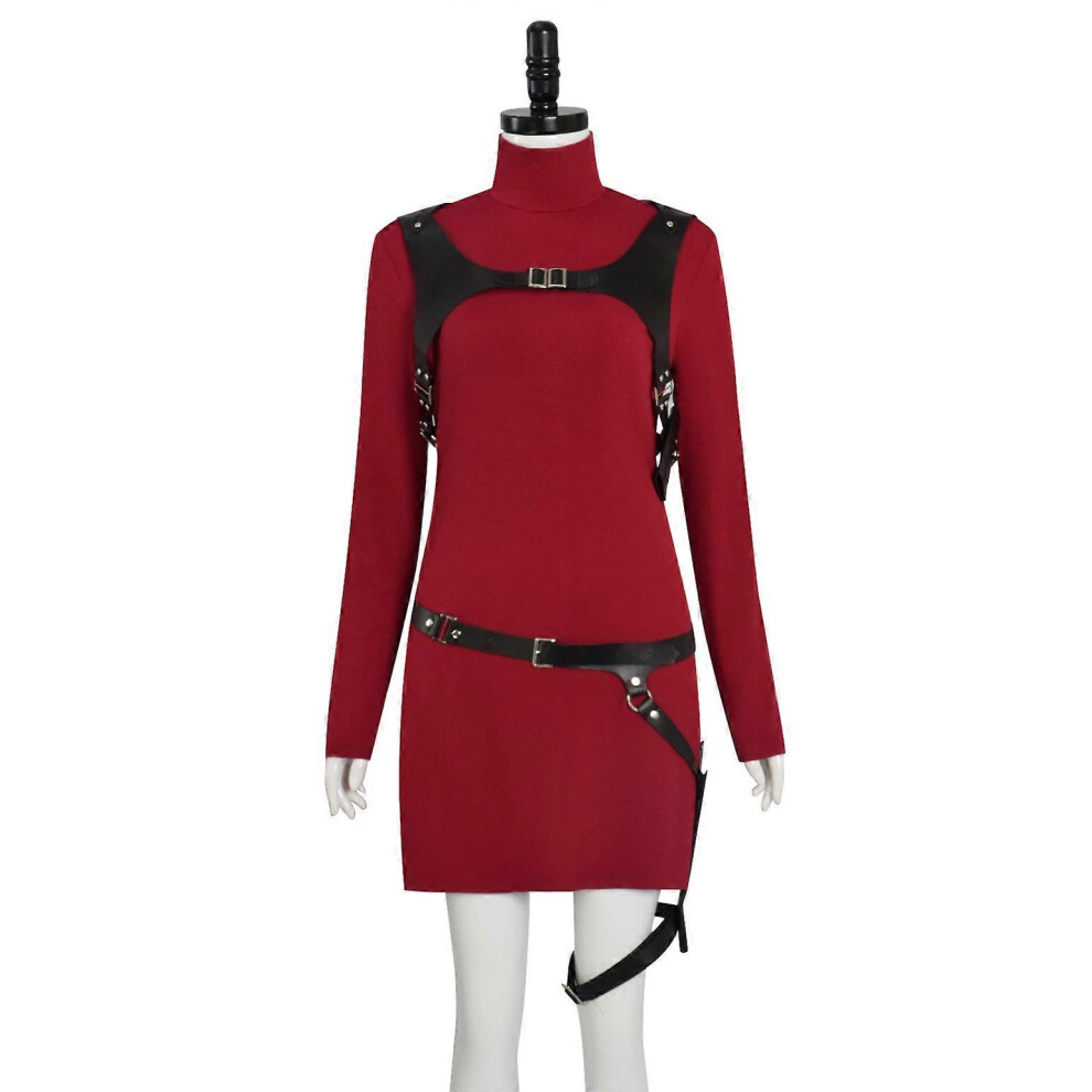OSIAS Ada Wong Cosplay Costume For Women -Thick & Stretchy Red Knit Sweater Dress, Adjustable Holster & Belt (L)