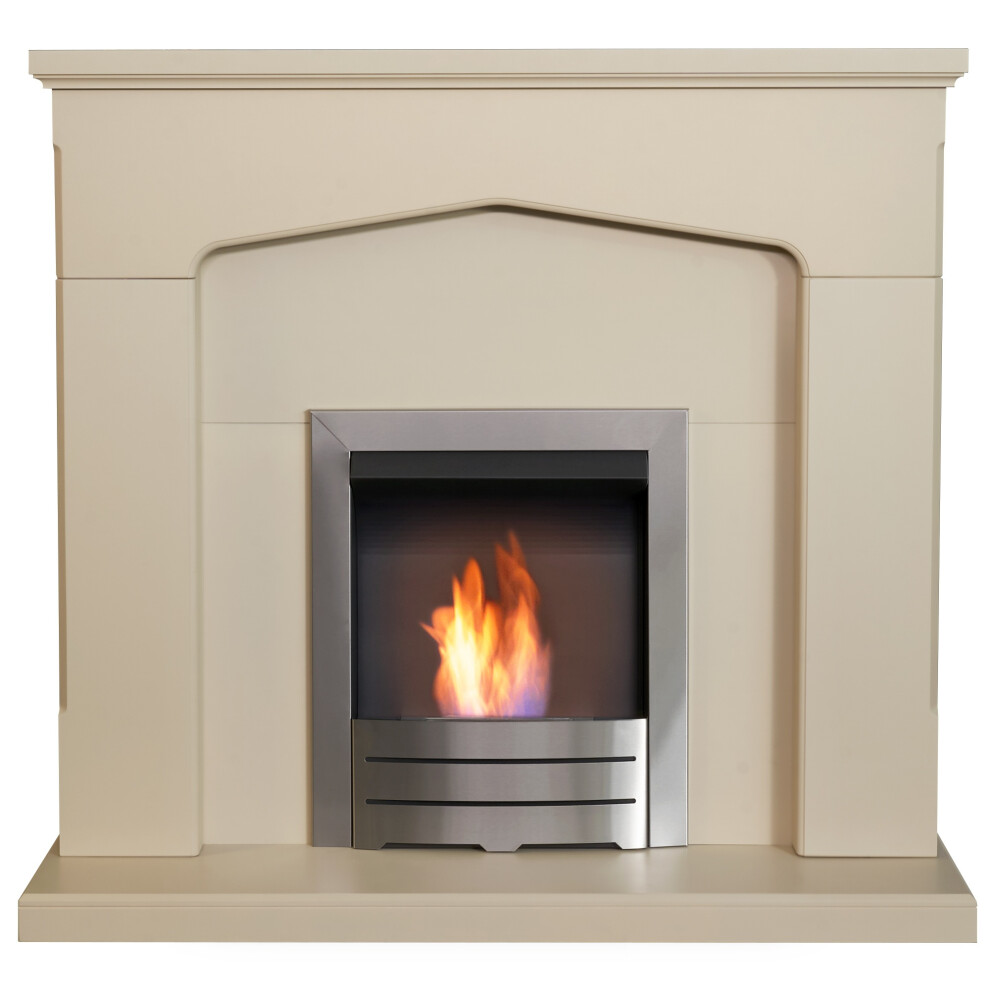Adam Cotswold Fireplace Suite in Stone Effect with Colorado Bio Ethanol Fire Brushed Steel, 48 Inch