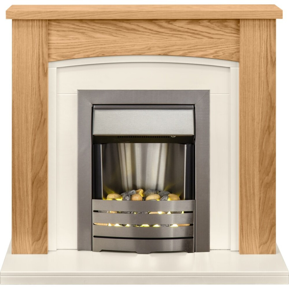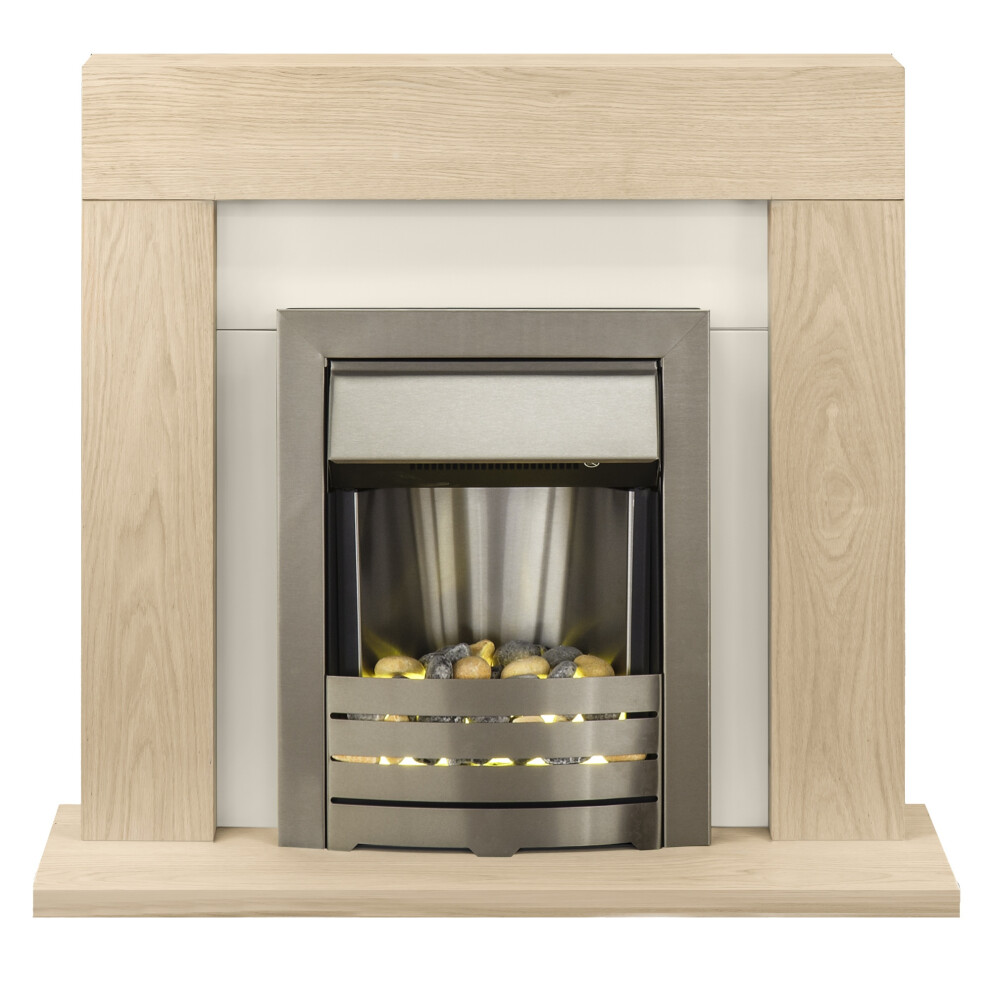 Adam Chilton Fireplace Suite in Oak with Helios Electric Fire in Brushed Steel, 39 Inch