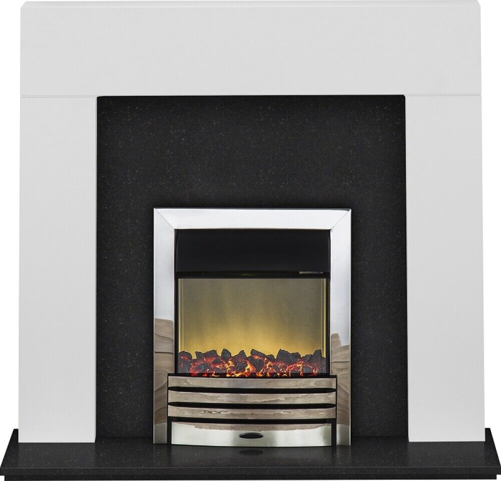 Adam Miami Fireplace Suite in Pure White and Granite with Eclipse Electric Fi...