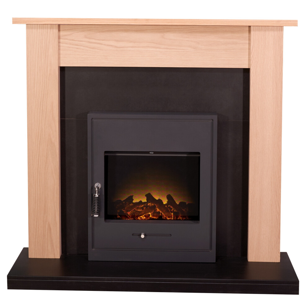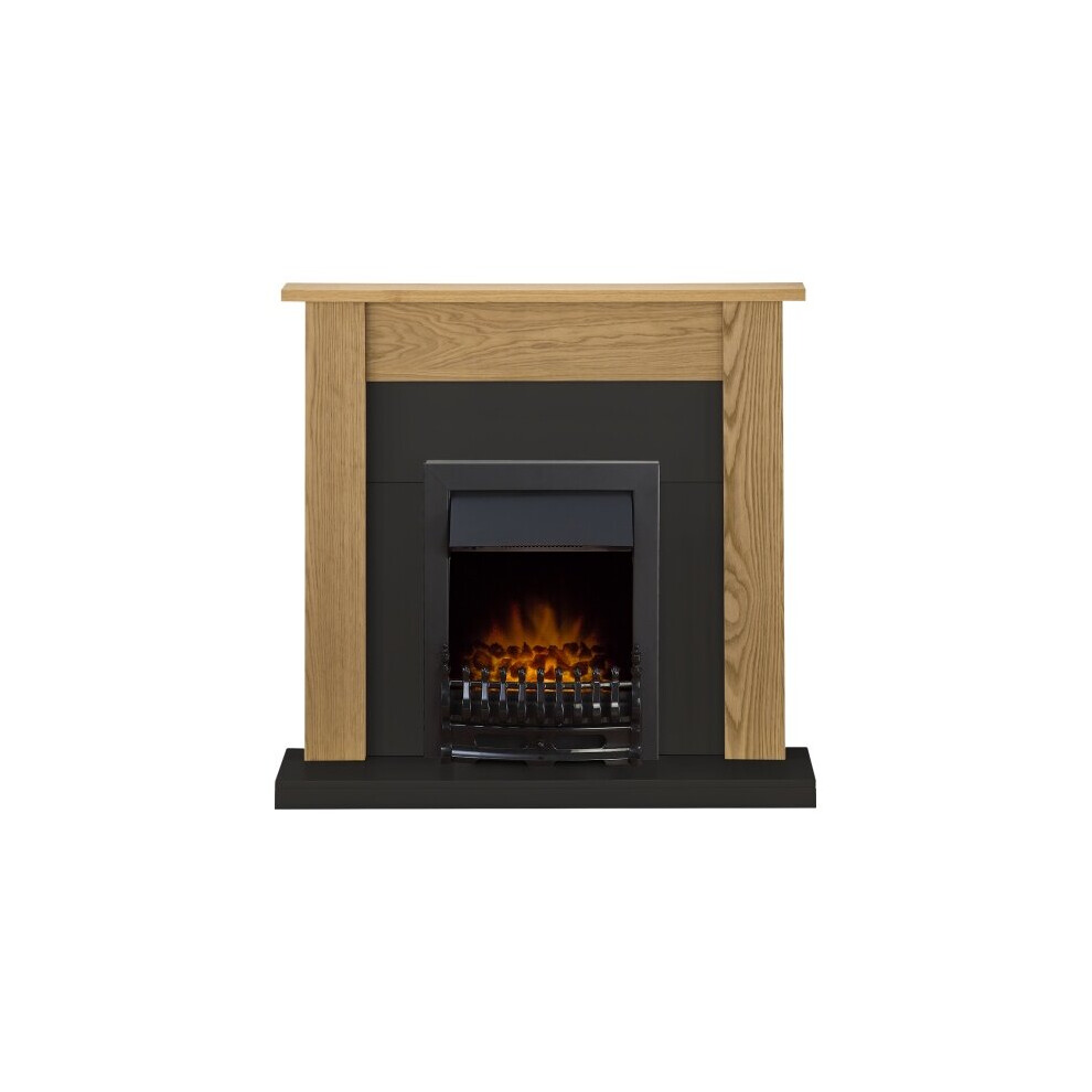 Adam Southwold Fireplace Suite in Oak and Black with Oslo Electric Fir