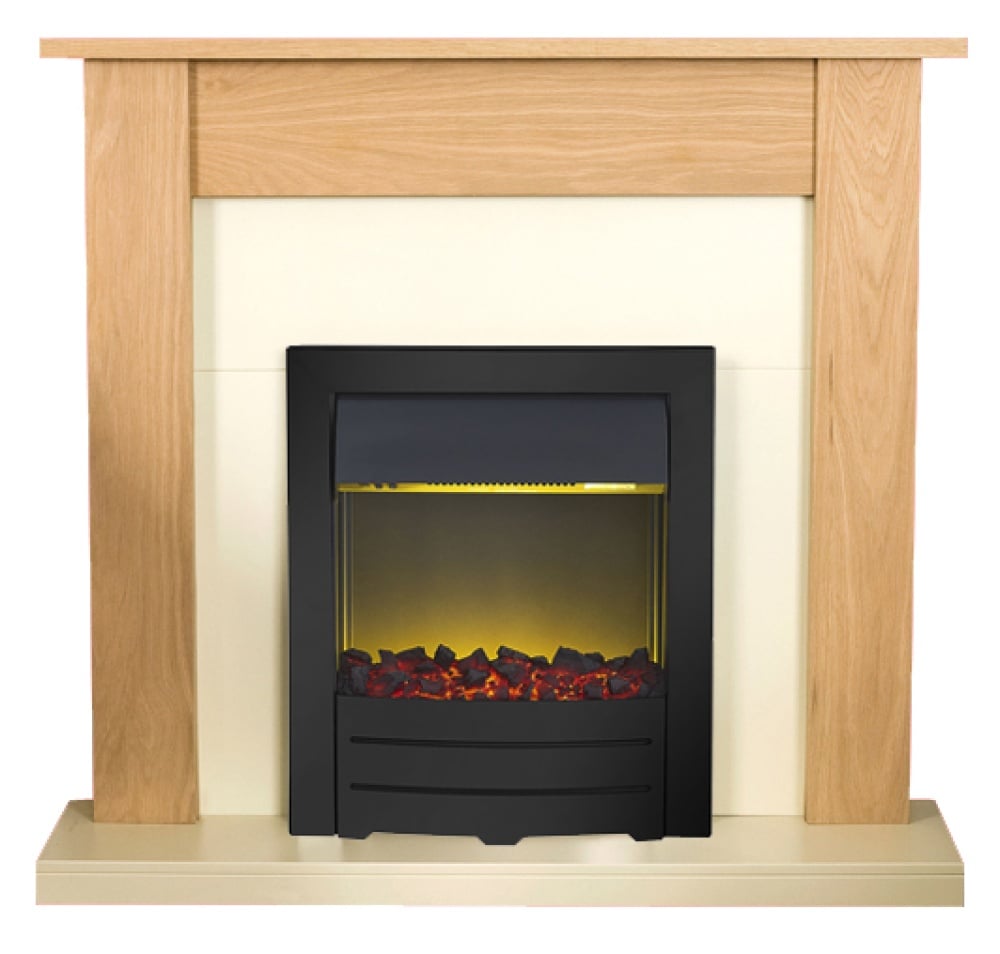 Adam Southwold Fireplace Suite in Oak and Black with Helios Electric Fire in ...