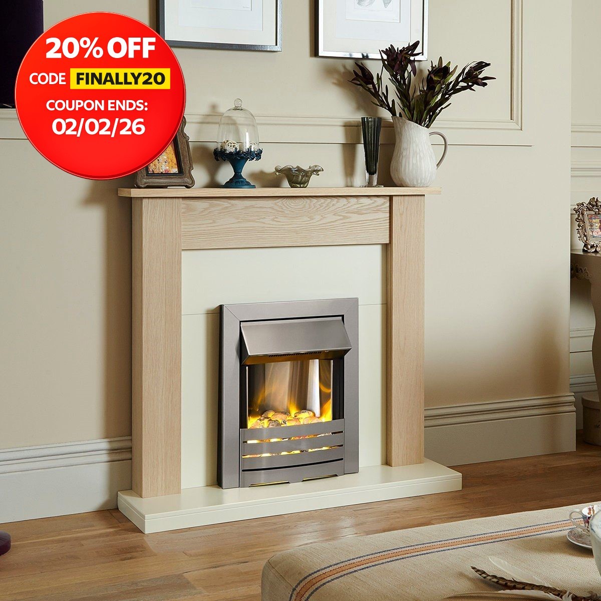 Adam Truro Fireplace Suite in Ivory with Helios Electric Fire, 2000 Watt