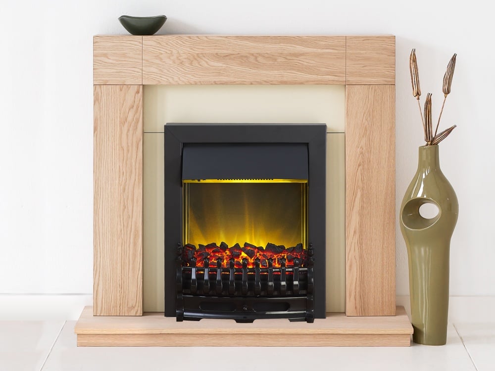 Adam Chilton Fireplace Suite in Oak with Eclipse Electric Fire in Black, 39 Inch