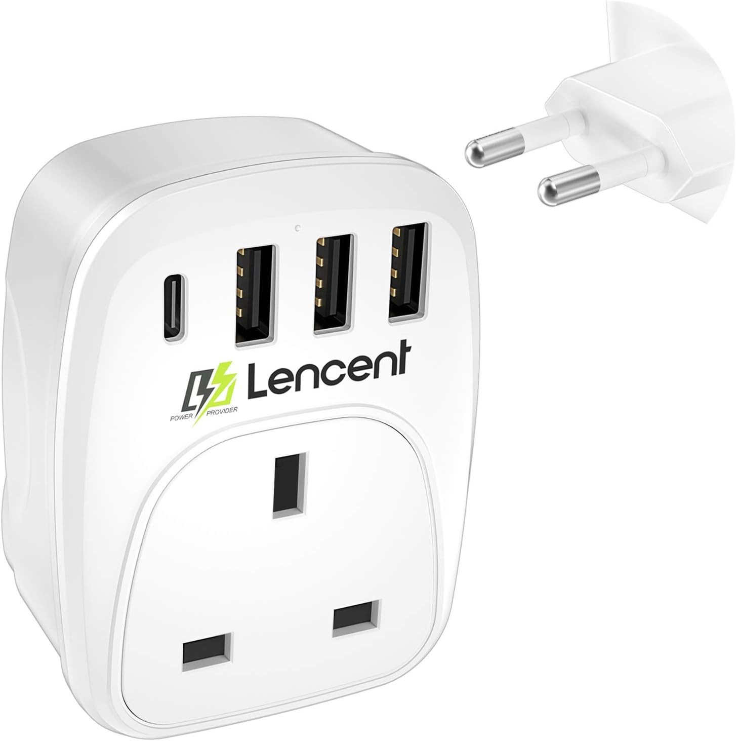 LENCENT EU Euro Europe Travel Plug Adapter 4 USB for UK to Germany France Spain
