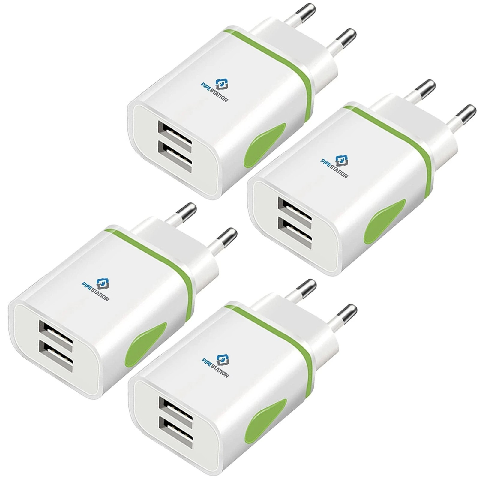4x EU 2 Pin to Dual USB Plug Adapter - 4 Pack Travel Charger Europe Euro Adaptor